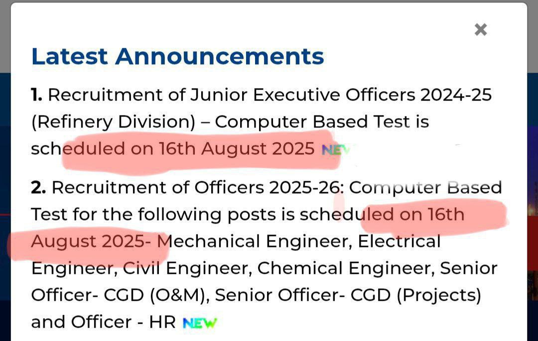 - Locate the HPCL Junior Executive Admit Card/ Hall Ticket 2025 download link and click on it.